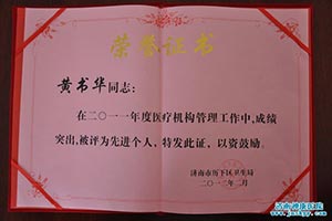 黄主任被卫生部门评选为“先进个人”